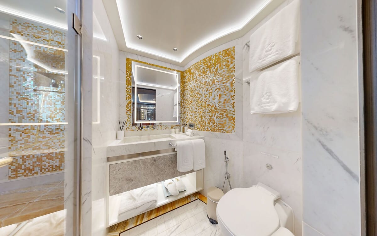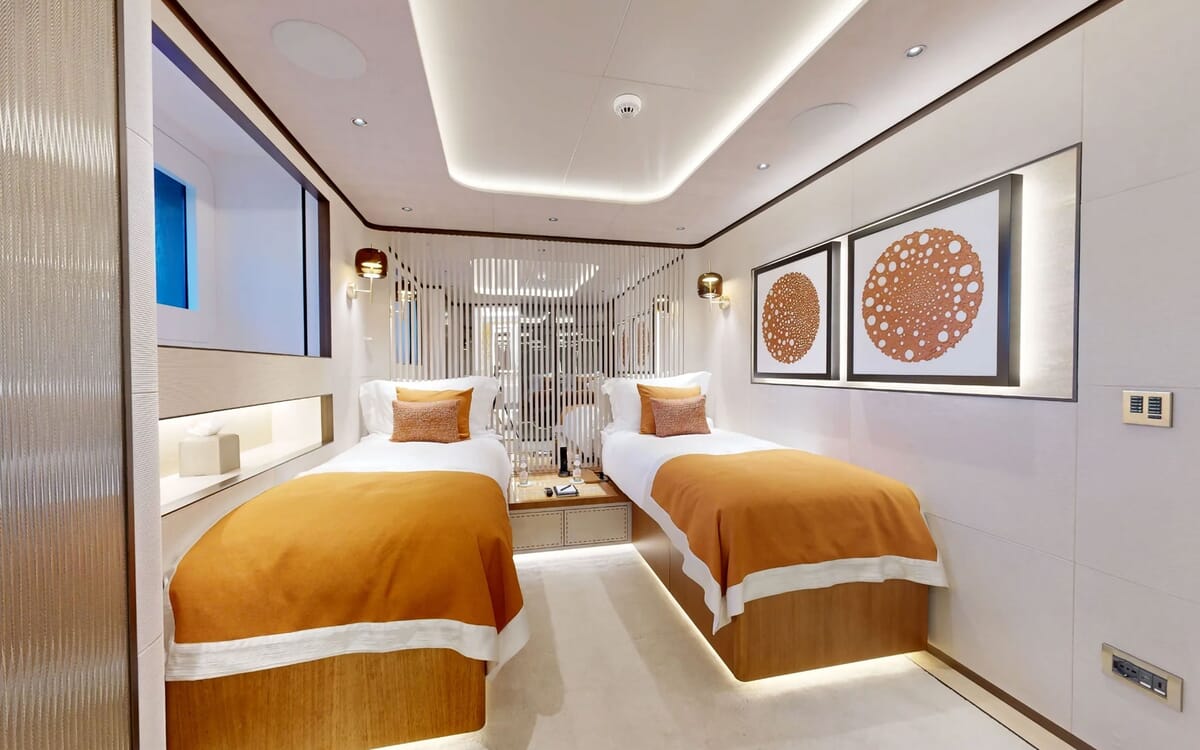 Die ETERNAL SPARK bietet bequem Platz für bis zu 12 Gäste in 6 luxuriösen Kabinen mit Bad.