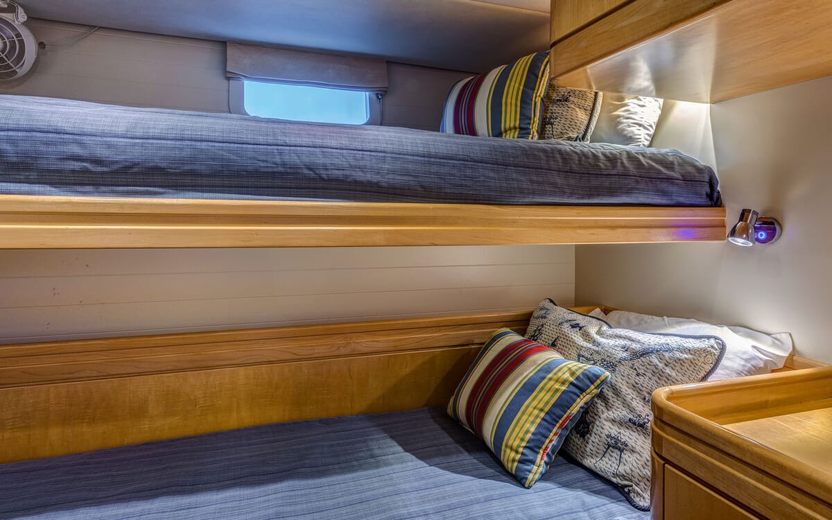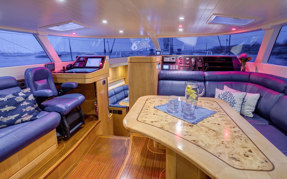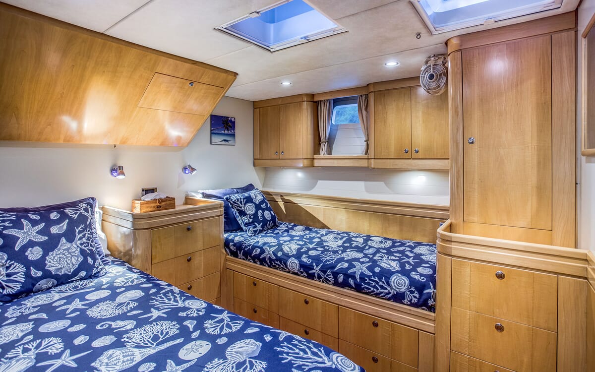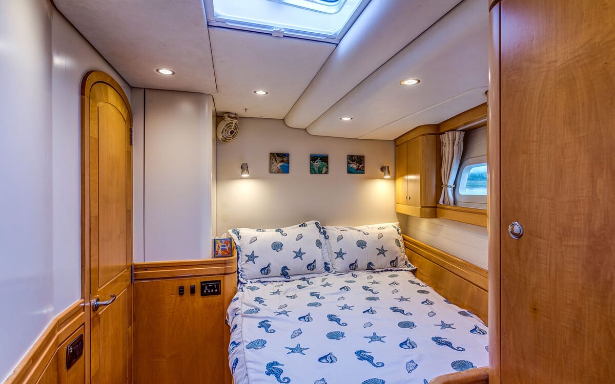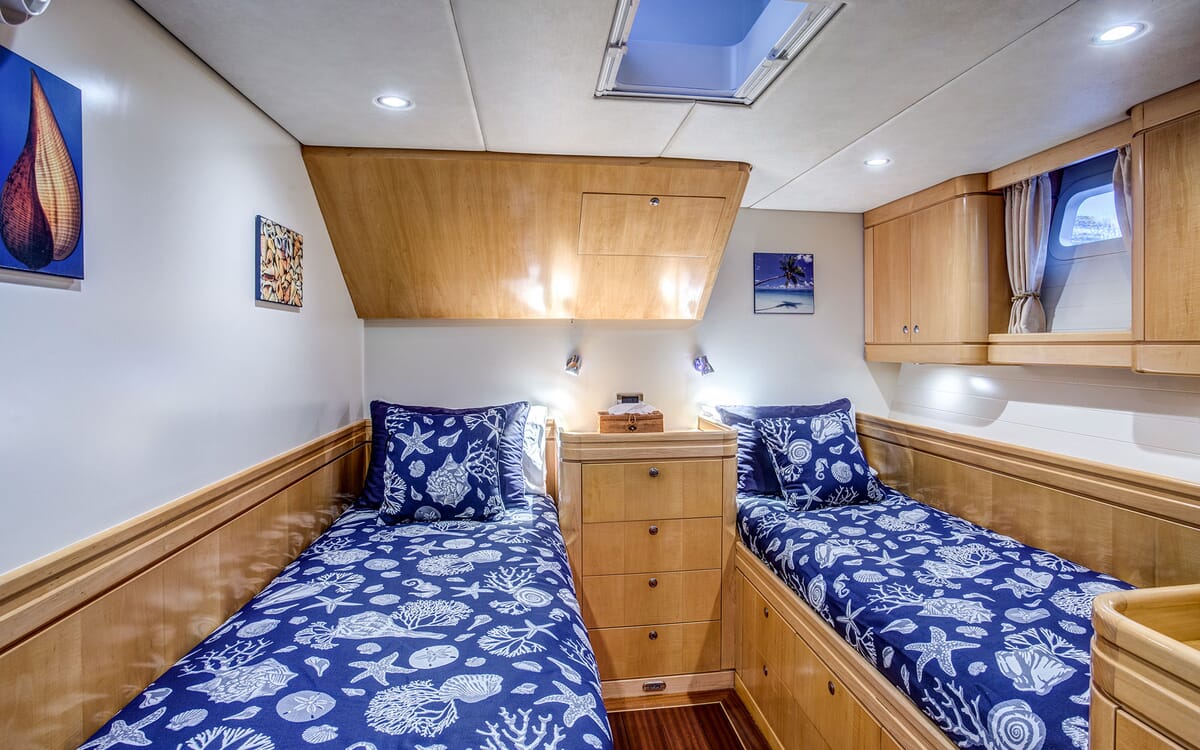 Unterkunft: 4 Gästekabinen + Mannschaftsraum (Mannschaftskabine mit zwei Schlafplätzen).