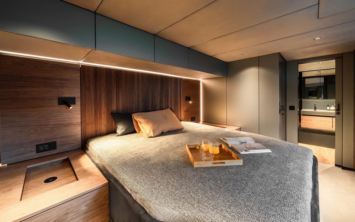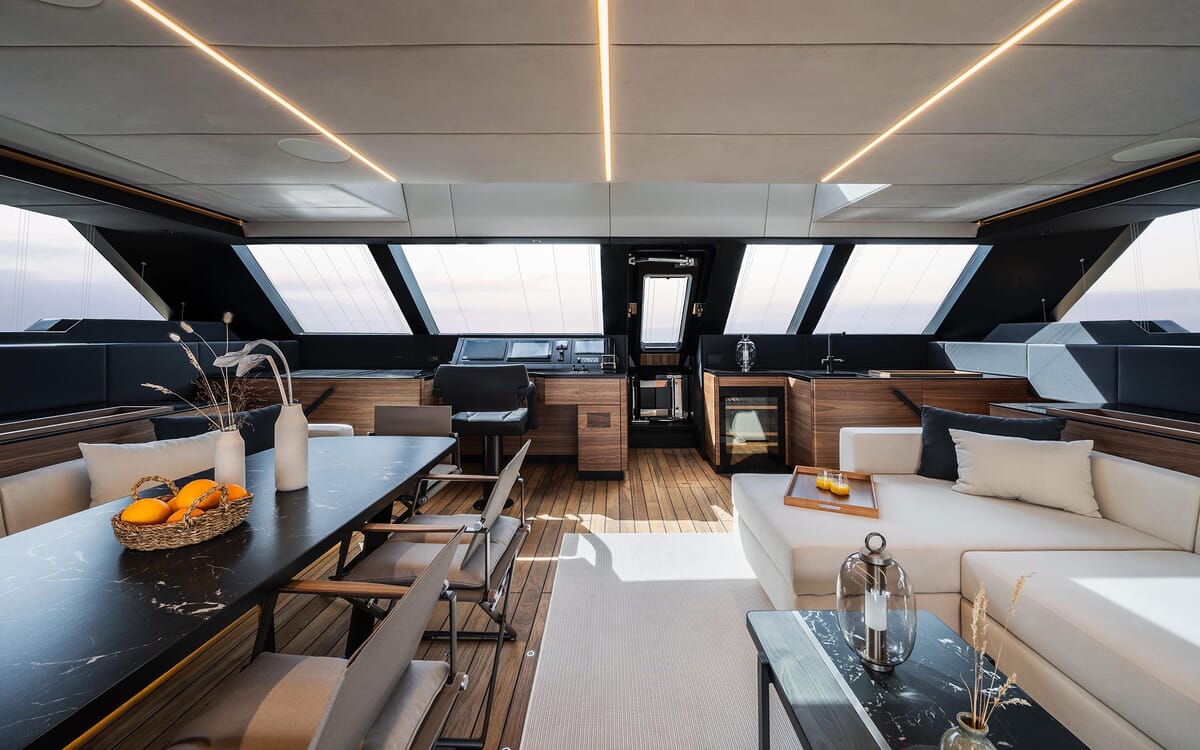 El catamarán eléctrico SUNREEF 60 está construido para ofrecer comodidad y lujo, con un amplio espacio habitable de 256 metros cuadrados.