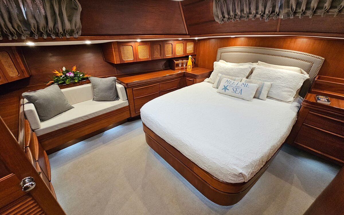 EAGLE'S NEST es un yate de crucero completamente renovado, que combina la tranquilidad de un casco probado con las ventajas de los sistemas y equipos modernos. En 2018, se sometió a una extensa reforma que transformó radicalmente el yate, incluyendo nuevo cableado, sistemas eléctricos actualizados y electrónica de navegación moderna, restableciendo efectivamente su vida operativa.