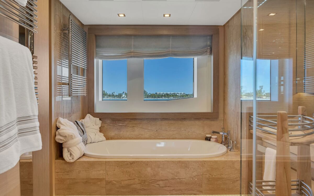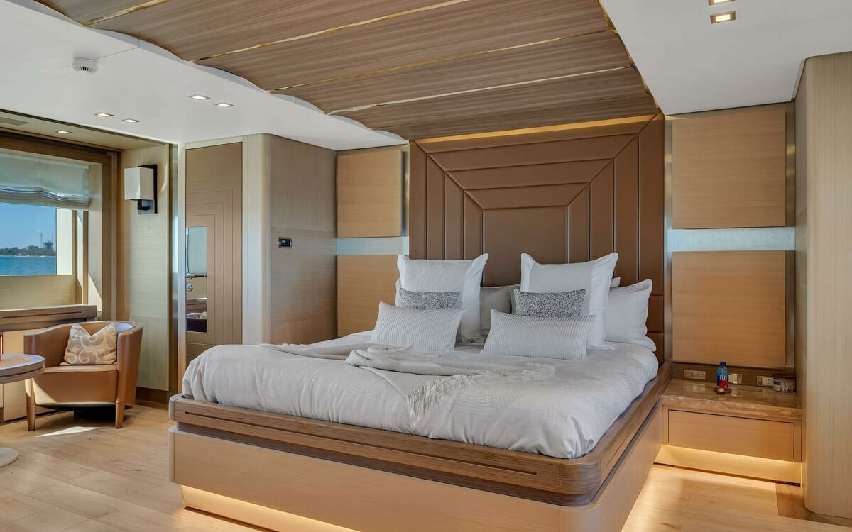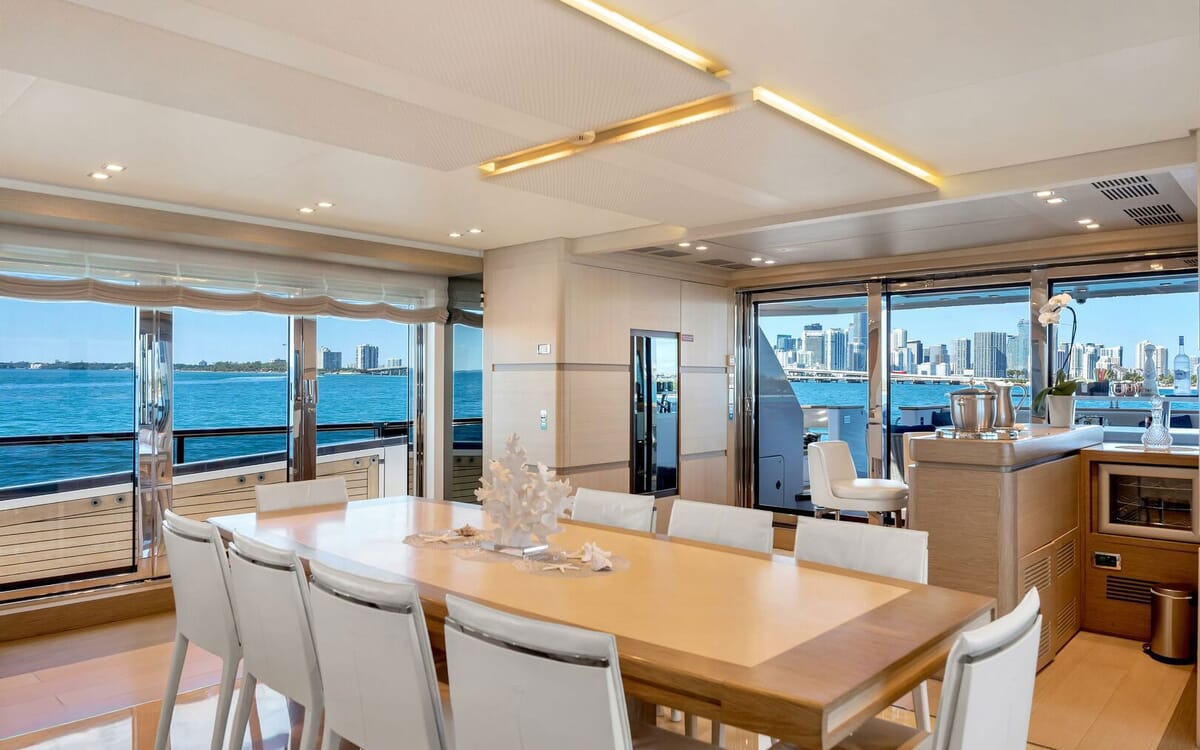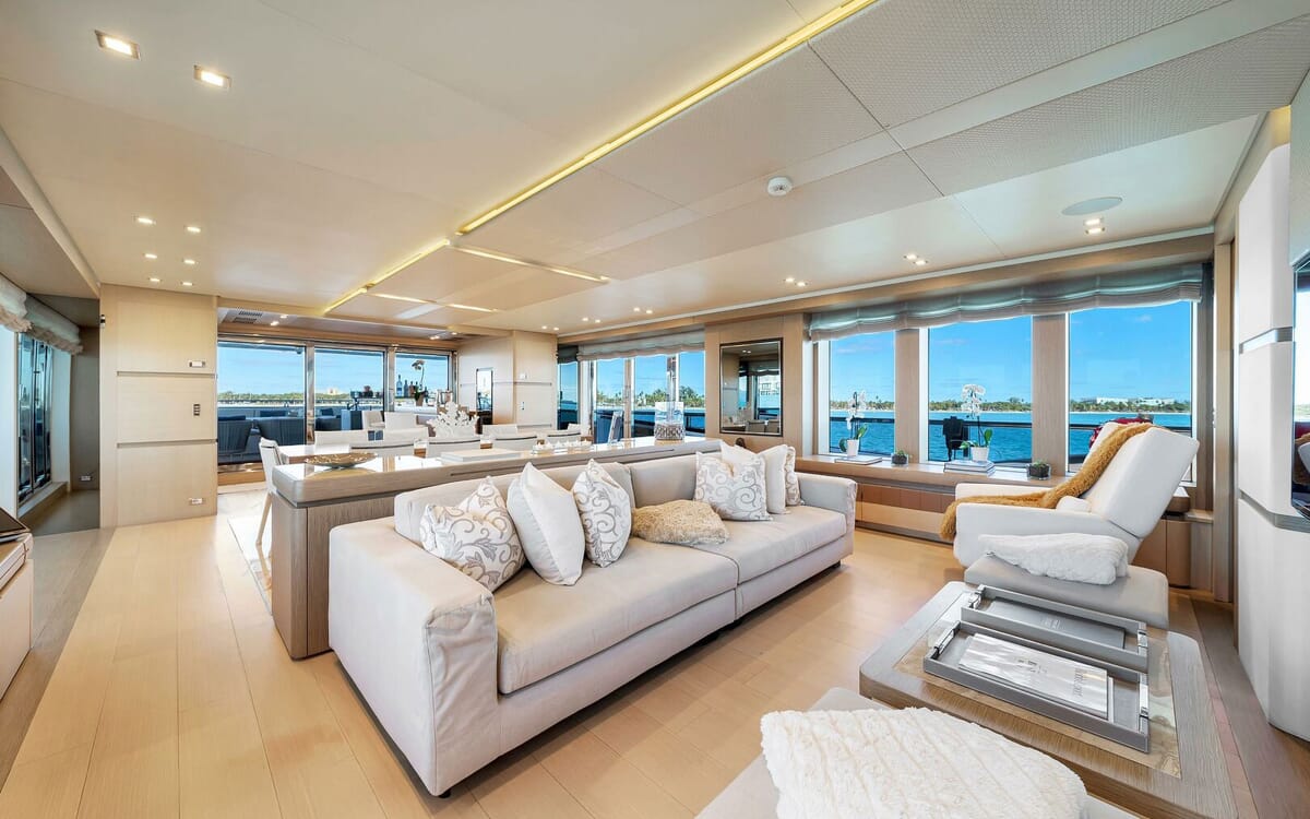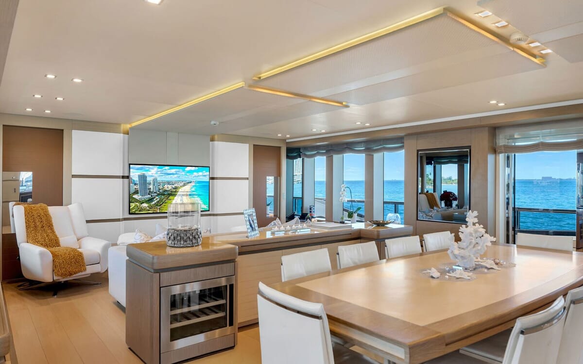 Construido en 2013, este yate a motor de 131 pies tiene un diseño moderno, un crucero suave y espacio para que los huéspedes se relajen.