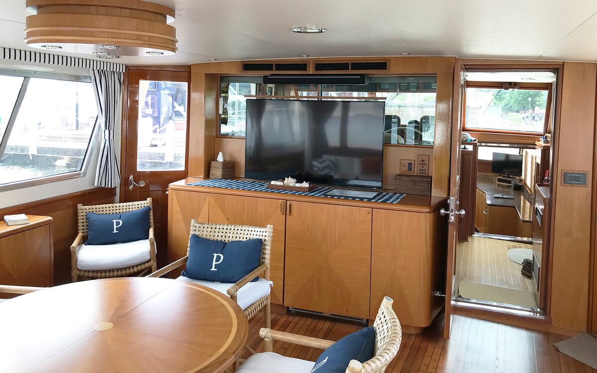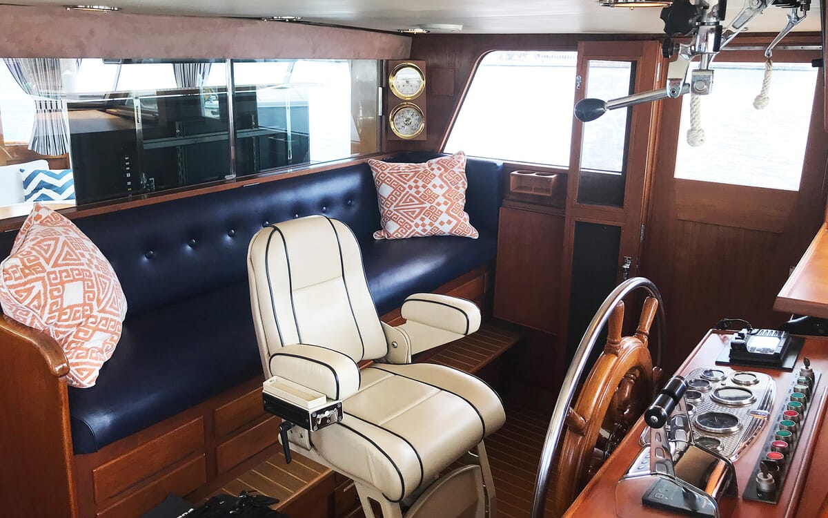 PENELOPE ha sido objeto de numerosas mejoras a lo largo de los años. PENELOPE ofrece más espacio habitable que sus compañeros. Un mamparo permanente se añadió a la cubierta de popa transformando esta zona en el salón principal y la reconfiguración del salón original a una cocina con desayunador y generoso espacio en el mostrador. Su pintura exterior, barniz y cubiertas de teca están en condiciones de yate. Listo para navegar.