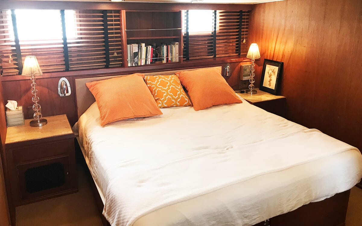 Dispone de alojamiento para cuatro personas en dos cómodos camarotes, uno doble y otro con dos camas individuales. Además, hay alojamiento para un miembro de la tripulación.